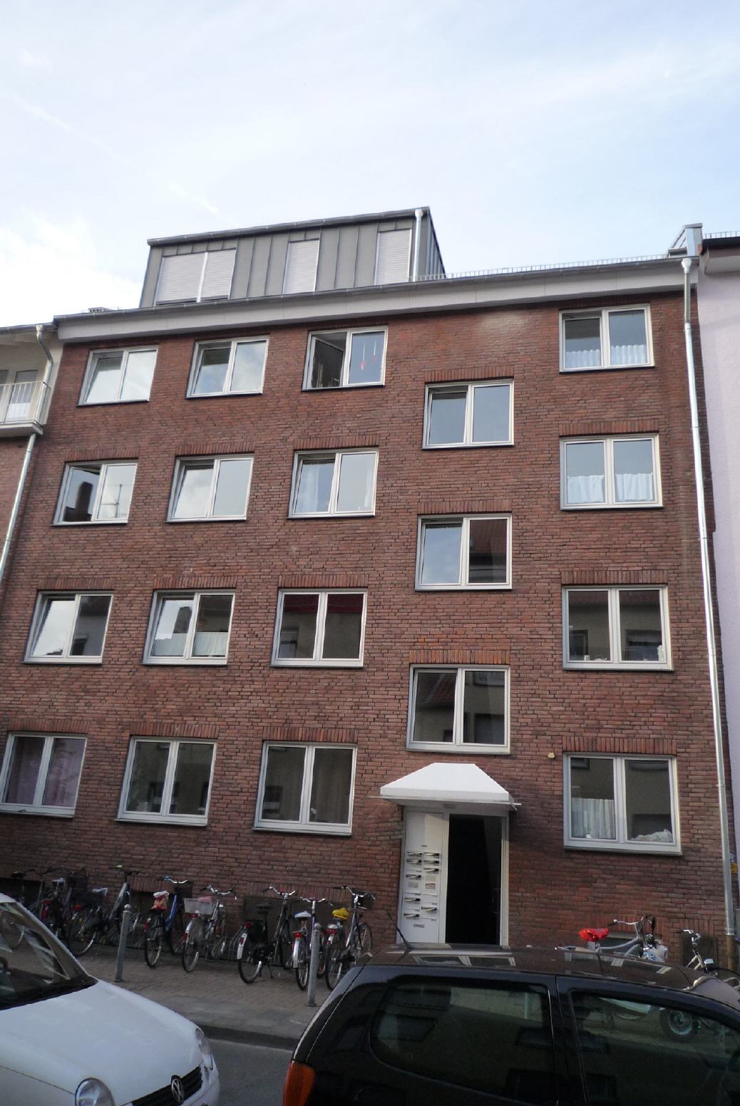 Das Gebäude aus den 1960er Jahren wurde ursprünglich als Schwesternheim gebaut. Nach der Umnutzung zu Wohnzwecken stand das Dachgeschoss nach wie vor leer und wurde auf Bauherrenwunsch ausgebaut. Hierzu wurde das Dach abgetragen und neu aufgebaut zur Schaffung einer gehobenen Wohneinheit mit Loggia.