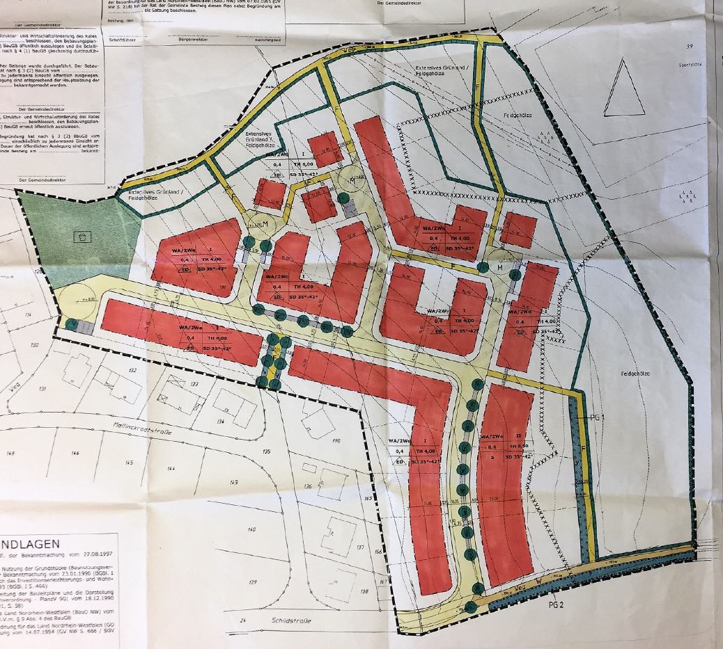 Aus Ackerlandfläche wurde eine Neubaugebiet entwickelt, welches ausschließlich für Einfamilienhäuser vorgesehen war. Hier haben wir die Erschließung und den Verkauf umgesetzt