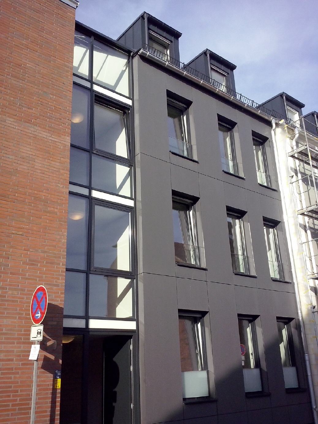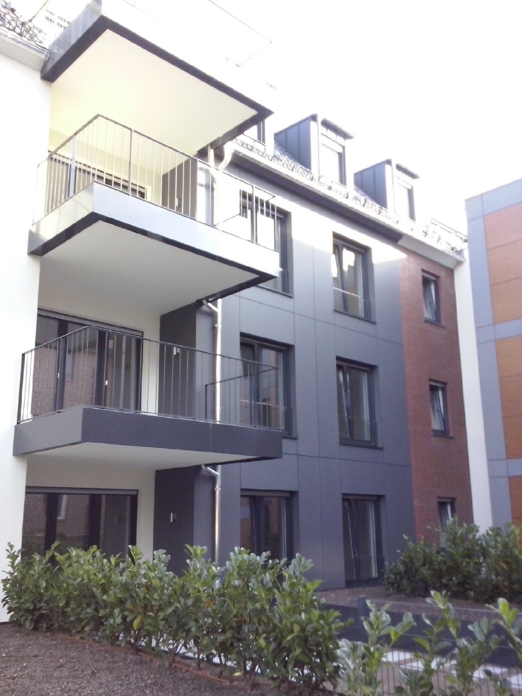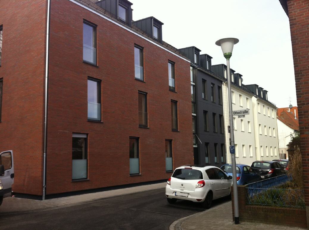 Der Gebäudekomplex sollte in Abstimmung mit der Stadt Münster feingliederig aufgeteilt werden, um die bestehende Struktur des Viertels zu wahren. Es entstanden insgesamt 4 Gebäudeteile mit einer gemeinsamen Tiefgarage und verschiedenen Fassaden und Dachtypen. 17 individuelle Wohneinheiten sind in diesem Objekt realisiert worden.